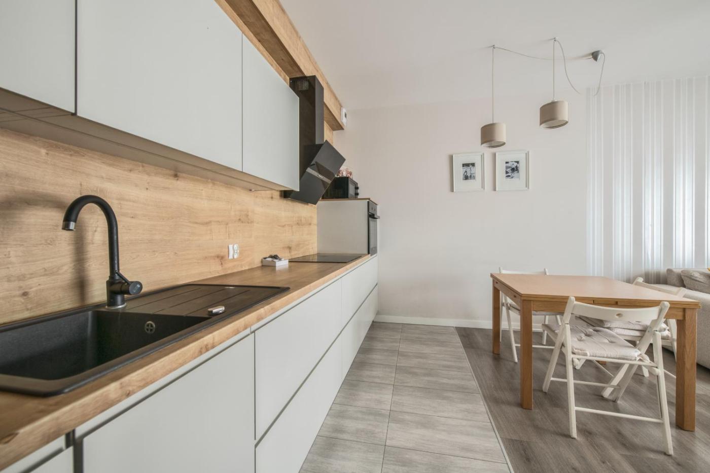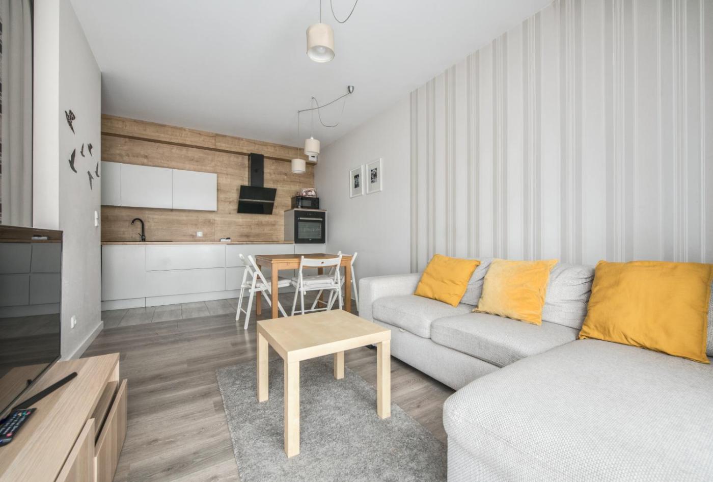 Apartament z 1 sypialnią. This apartment features 1 living room, 1 separate bedroom and 1 bathroom with a bath and free toiletries. In the well-equipped kitchenette, guests will find a stovetop, a refrigerator, a dishwasher and kitchenware. The apartment features a flat-screen TV, a washing machine, a tea and coffee maker, a seating area as well as city views. The unit has 2 beds. Apartament - 5 osobowy. Powierzchnia pokoju ok.: 39 mkw.