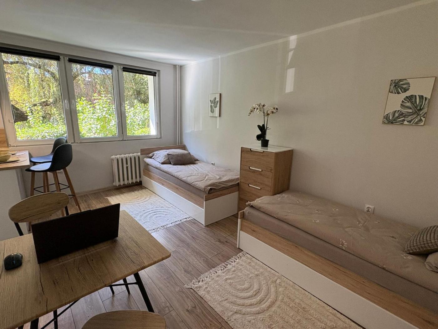 Apartament z 1 sypialnią. This apartment comprises 1 bedroom, kitchen and 1 bathroom with a shower. The apartments kitchen, which features a refrigerator and an oven, is available for cooking and storing food. The apartment provides a flat-screen TV with streaming services, a washing machine, a tea and coffee maker, a dining area as well as garden views. The unit offers 2 beds. Apartament - 2 osobowy. Powierzchnia pokoju ok.: 30 mkw.