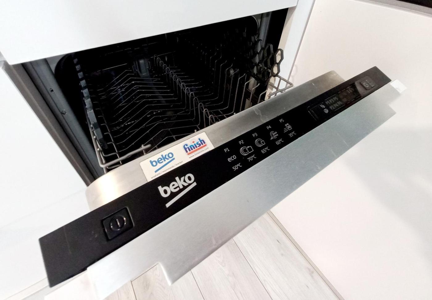 W apartamencie znajduje się w pełni wyposażona kuchnia, gdzie można przygotować ulubione posiłki. W jej skład wchodzą takie udogodnienia jak płyta kuchenna, piekarnik, zmywarka, a także czajnik elektryczny i lodówka. Dodatkowo, goście mają do dyspozycji pralkę, co z pewnością ułatwia dłuższy pobyt.
